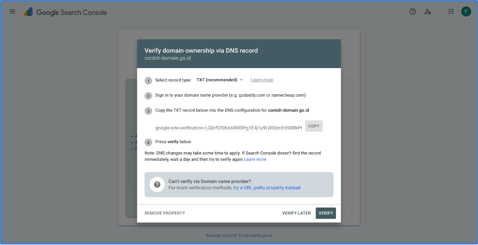 D. Lakukan verifikasi nama domain dengan mengikuti panduan